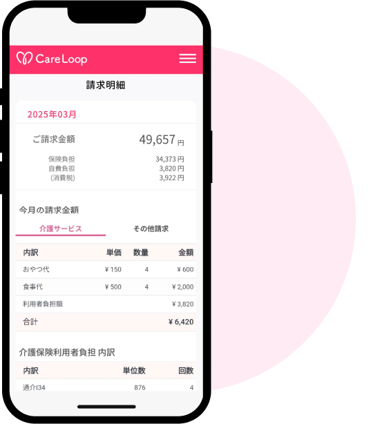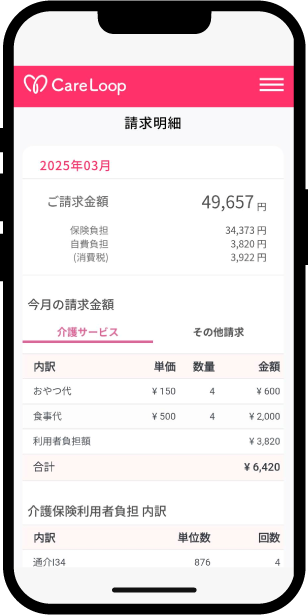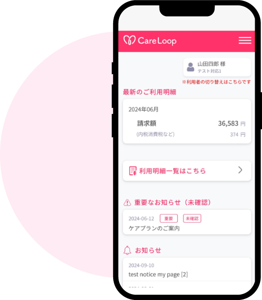 ケアプランや請求書などの情報はCareLoop上で安全に管理され、セキュリティ面も万全。