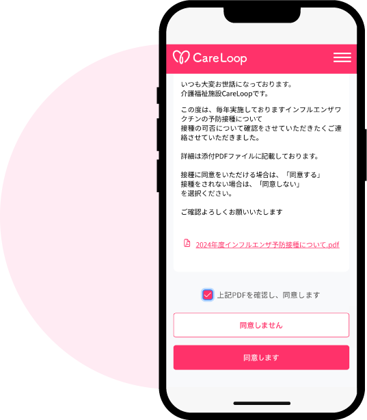 送信・同意履歴の確認まで、CareLoop上で完結します。